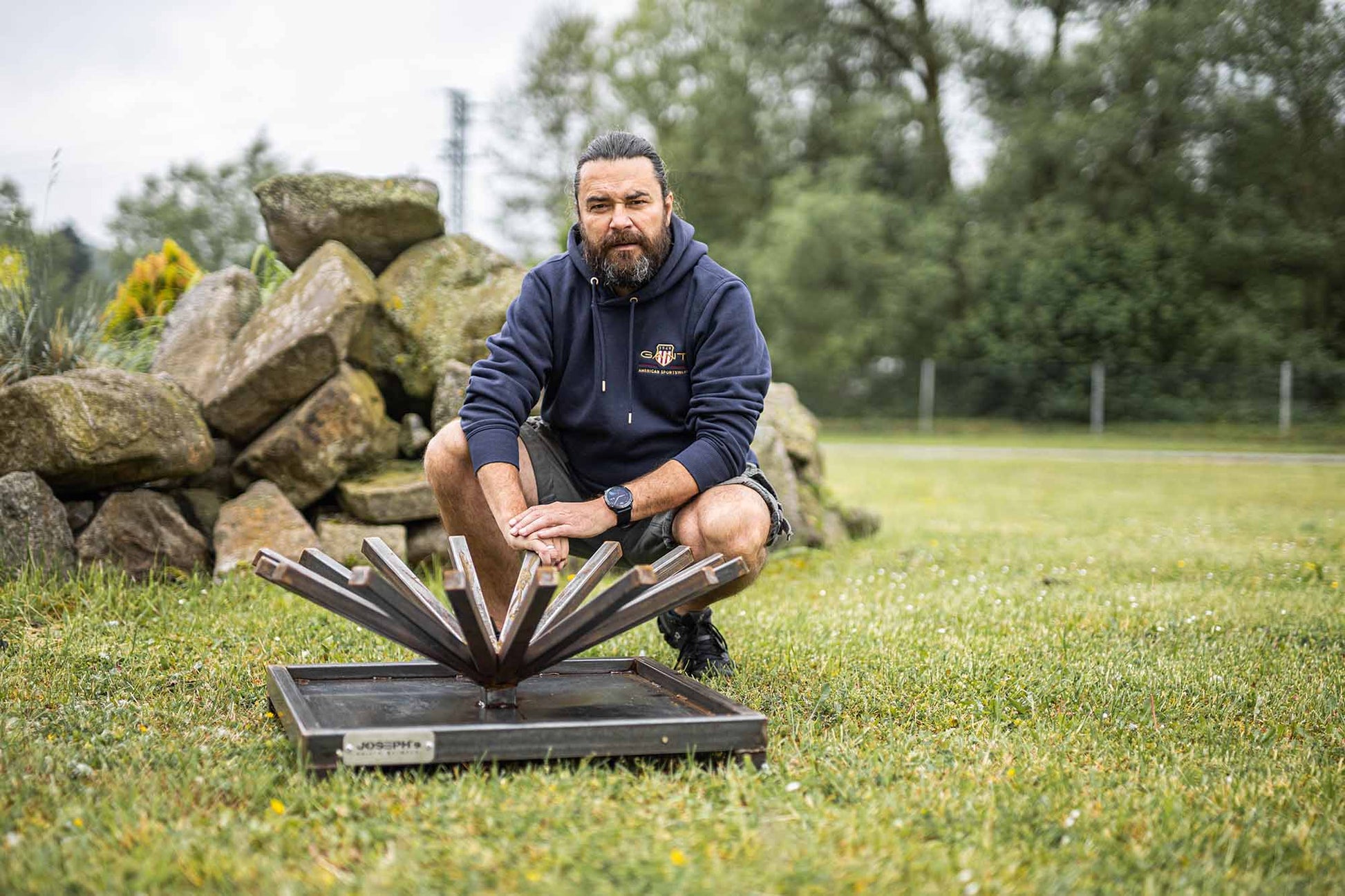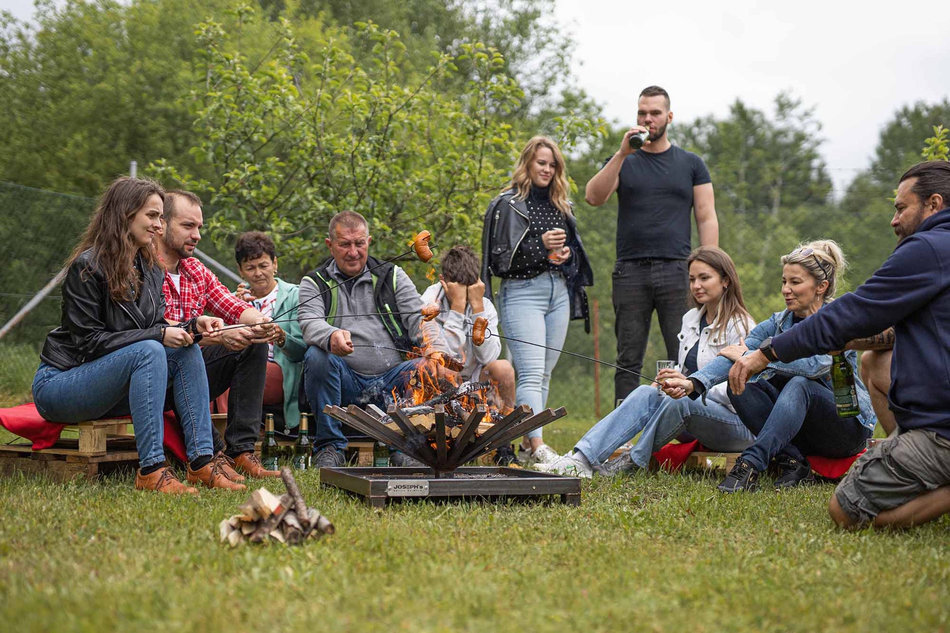 Its unique black steel construction not only ensures excellent weather resistance but also optimizes airflow for even burning without excessive smoke. The steel bars, tightly grouped in the centre, enable efficient fuel retention while also providing ample space for adding fuel, making operation easier. An easily accessible ashtray, it simplifies ash removal and cleaning after each use. Peter thus brings not only warmth and light but also the comfort and practicality you expect from an outdoor fireplace.
